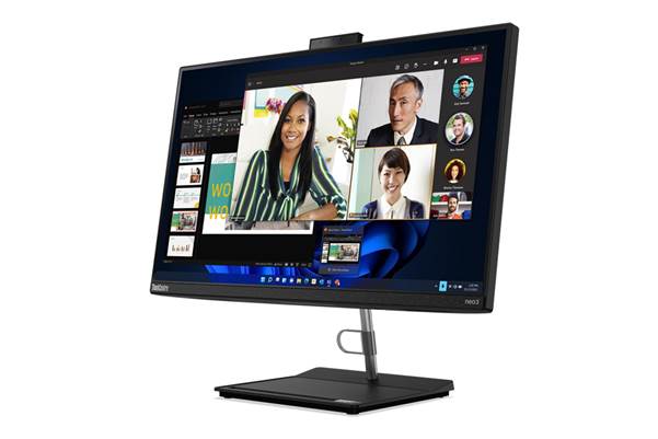 آلاینوان ThinkCentre Neo بیشتر از هر چیز به خاطر طراحی ساده و کاربردیاش خودش را از مدلهای رقیب جدا میکند. نمایشگر ۲۱٫۵ اینچی Full HD با پنل IPS و پوشش مات، تصویر واضحی ارائه میدهد و برای کار طولانی پشت سیستم، خستگی کمتری ایجاد میکند، اما ممکن است اندازهی نسبتا کوچک آن باب میل تمام کاربران نباشد. حاشیههای نسبتا باریک صفحهنمایش هم کمک کردهاند تا ظاهر دستگاه مدرنتر باشد و فضای کاری جمعوجورتری شکل بگیرد.